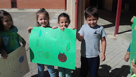 El viernes todos los niños del centro después del recreo presentamos unos carteles que hicimos en la clase de Naturales para concienciarnos sobre el cambio climático.